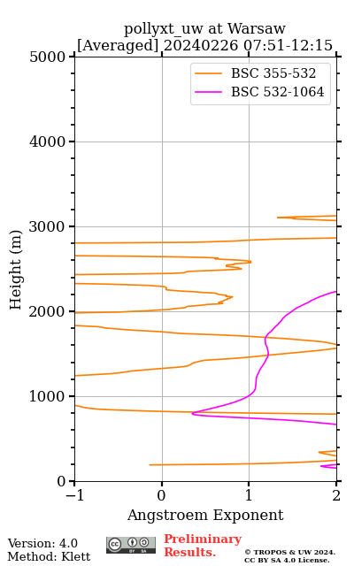 Product typeAveraged Angstroem exponent profile (Klett method) overlap_corrected