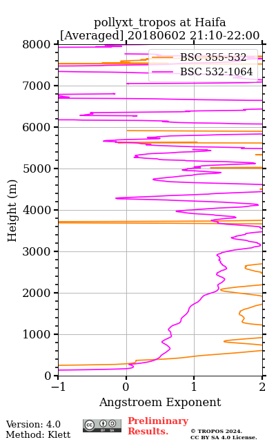 Product typeAveraged Angstroem exponent profile (Klett method)